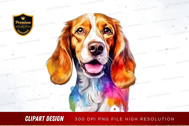 Watercolor Happy Colorful Clipart Png Dog Spaniel
