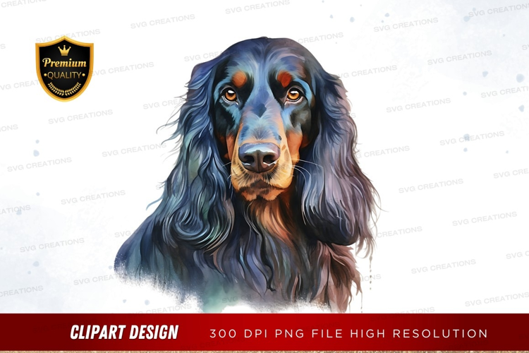 Illustration Pet Portrait Dog Canine Black And Tan Expressive Eyes Long Fur Calm Demeanor