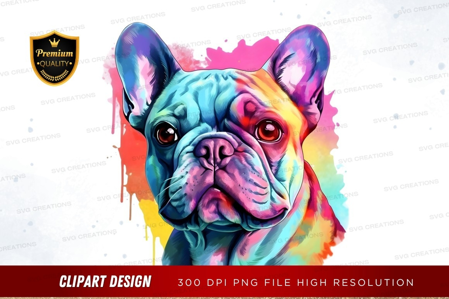 Paint Animal Colorful Clipart Pet Dog Digital Art Painterly French Bulldog Rainbow Colors