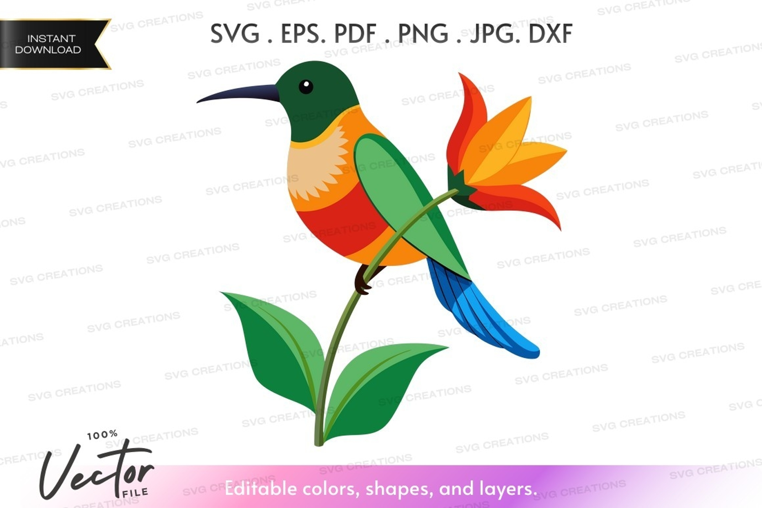 Vector Nature Green Colorful Flower Silhouette Orange Blue Bird Hummingbird