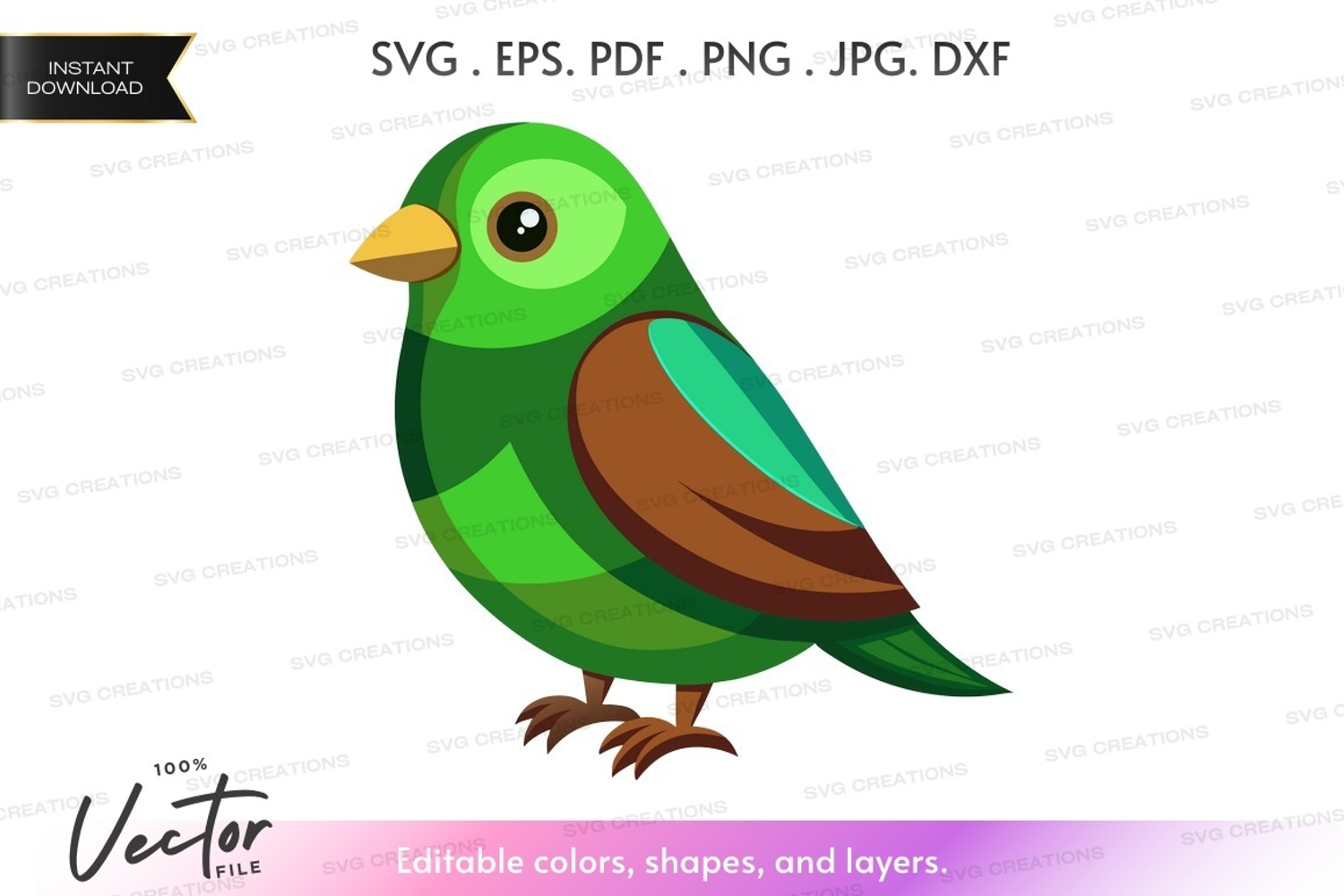 Green Silhouette Brown Bird Feathers Vector Illustration Yellow Beak