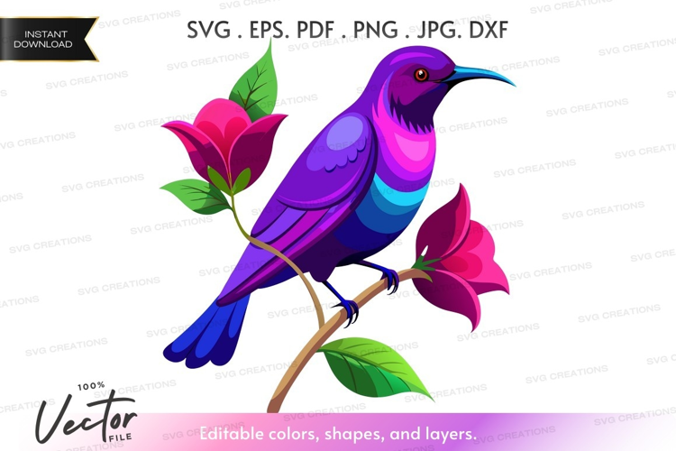 Illustration Vector Nature Colorful Flower Silhouette Branch Bird