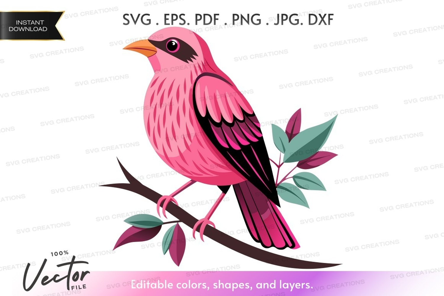 Illustration Vector Pink Silhouette Leaves Branch Bird Black Wings Orange Beak