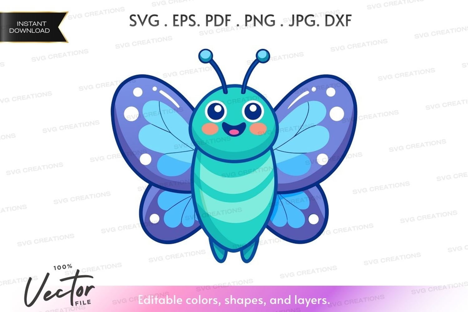 Cartoon Nature Friendly Blue Butterfly Insect Teal Polka Dots