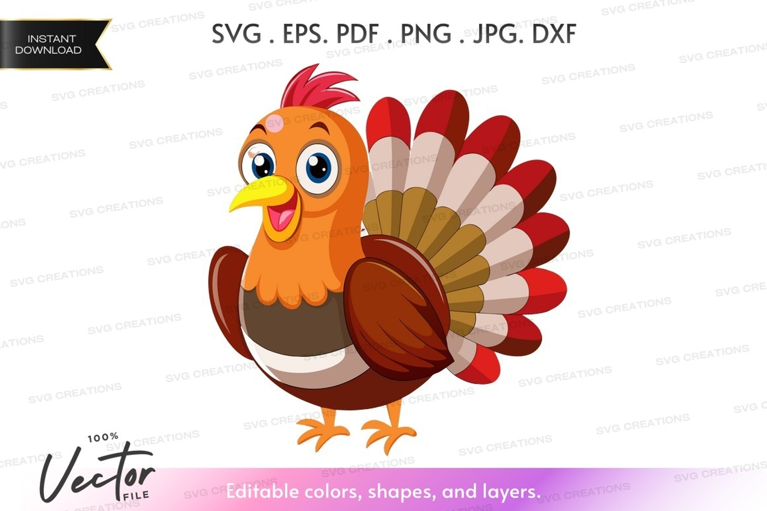 Cartoon Animal Friendly Turkey Thanksgiving Feathers