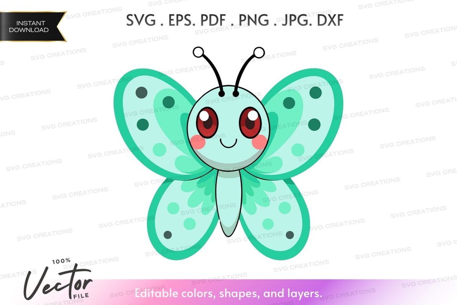 Illustration Cartoon Vector Cute Green Friendly Butterfly Light Blue Polka Dots
