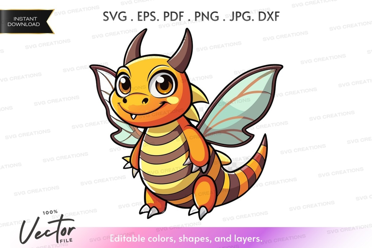 Illustration Cartoon Vector Friendly Orange Yellow Dragon Dragonfly Translucent Wings Striped Body