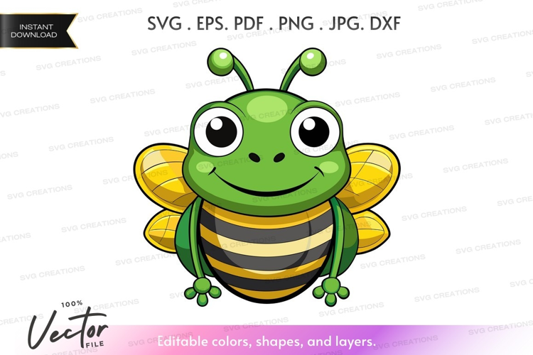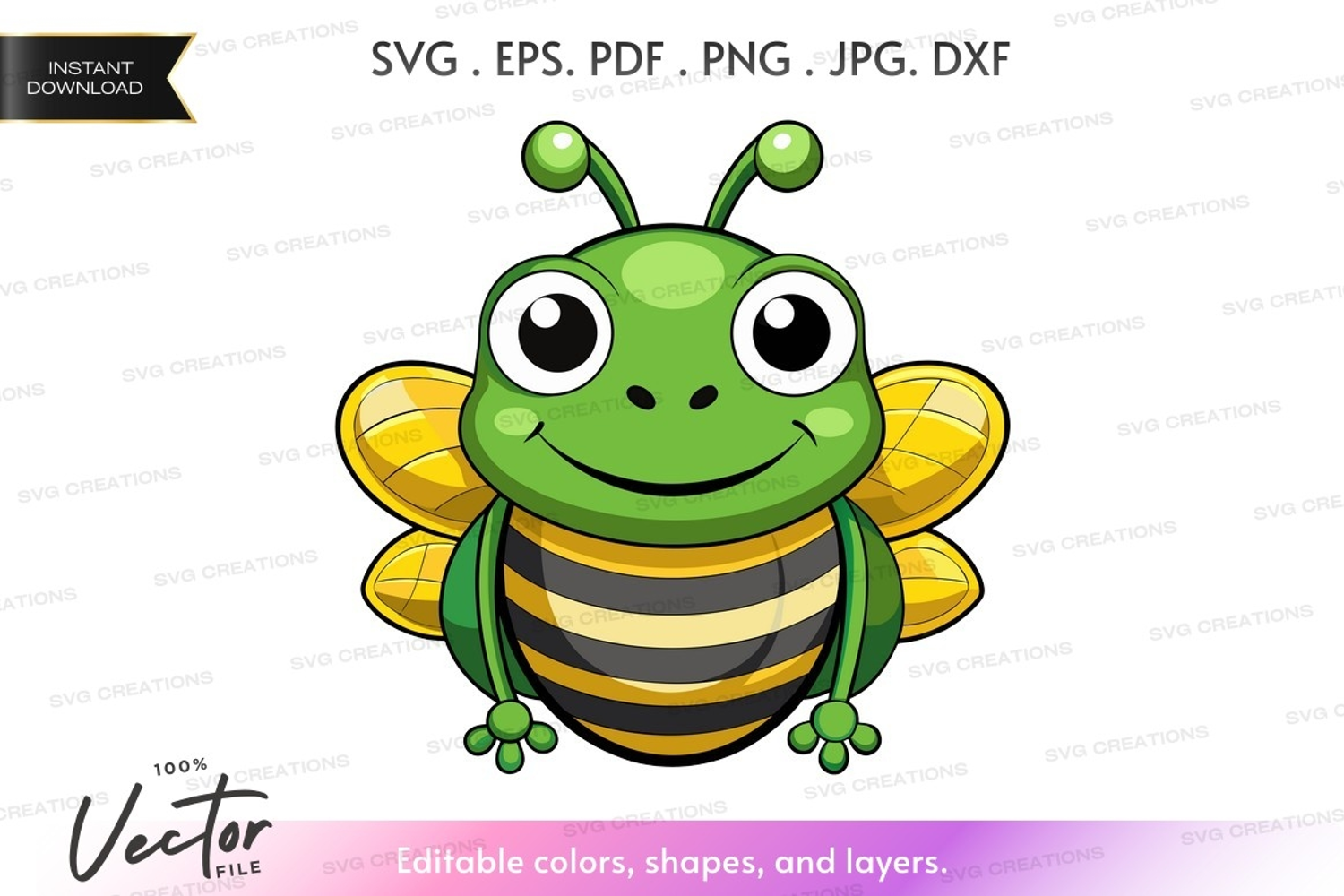 Cartoon Animal Green Silhouette Yellow Insect Stripes Wings Bee Frog