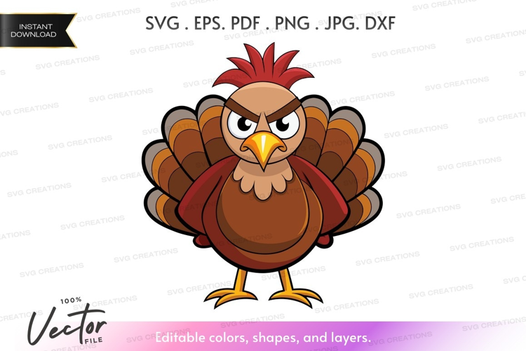 Vector Angry Silhouette Turkey Plumage Beak Legs Facial Expression