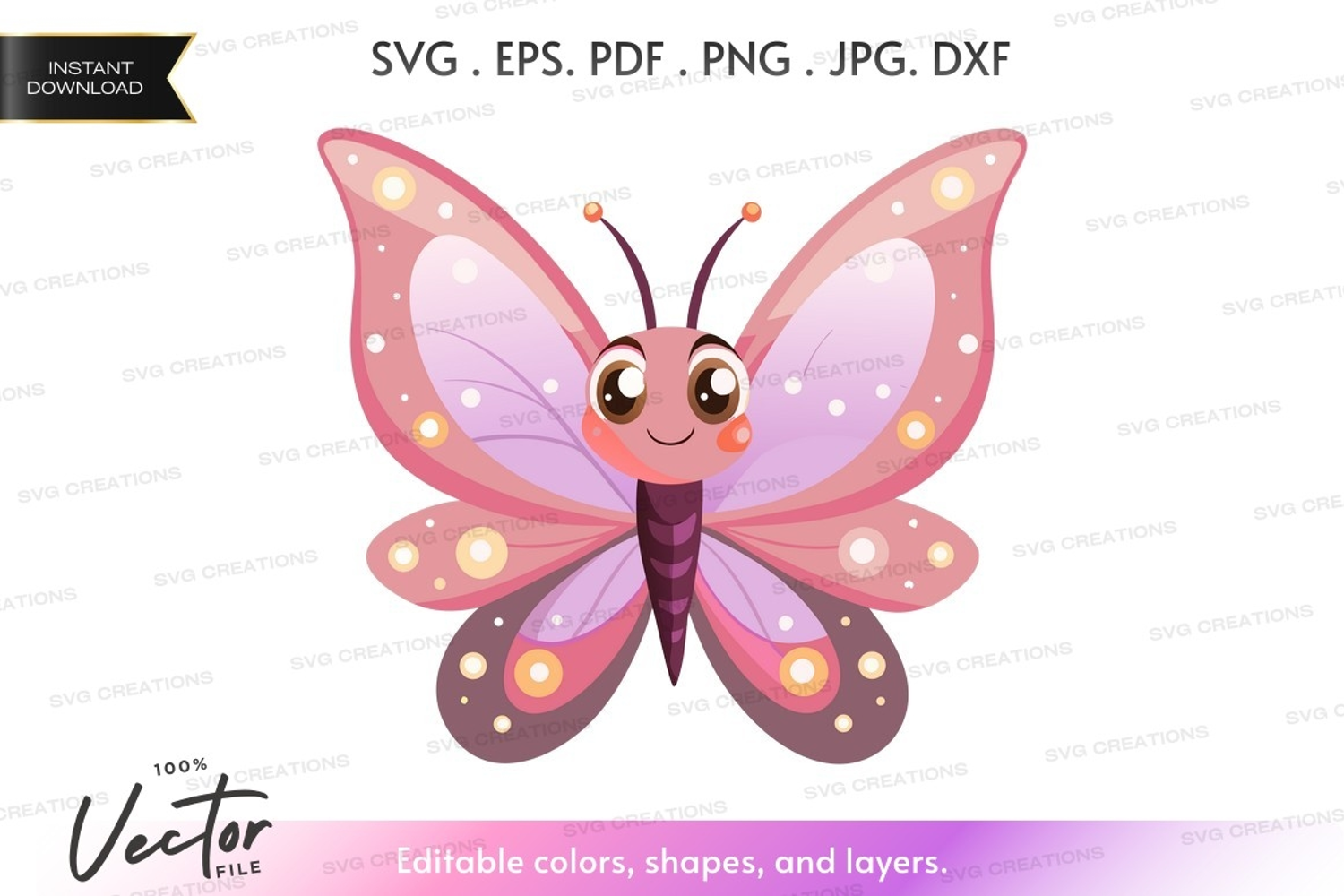 Cartoon Vector Friendly Colorful Silhouette Pattern Butterfly Wings Polka Dots