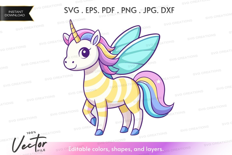 Illustration Cartoon Animal Fantasy Unicorn Wings Magical Mythical Golden Horn