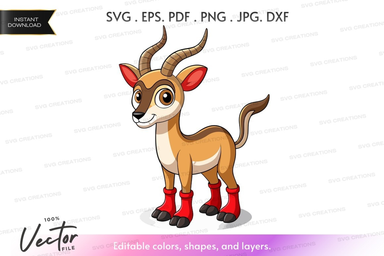 Cartoon Animal Friendly Deer Vector Silhouette Red Boots Spiral Horns