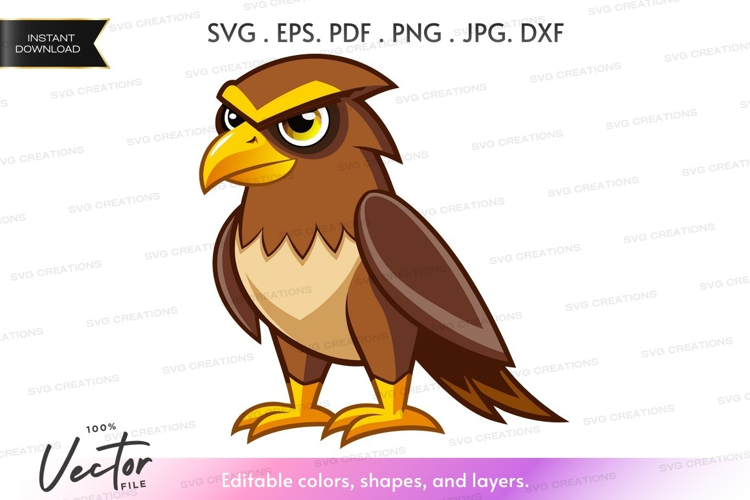 Cartoon Vector Angry Silhouette Bird Owl Feathers Eyes Beak Fierce