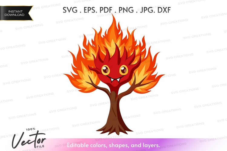 Cartoon Playful Tree Silhouette Face Vibrant Fire Flame Flames