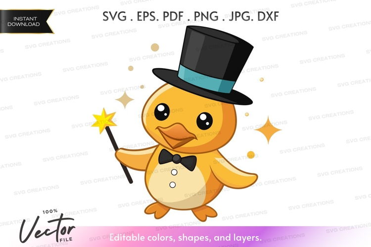 Magic Duckling Wand Top Hat Bow Tie Sparkles Vector Silhouette
