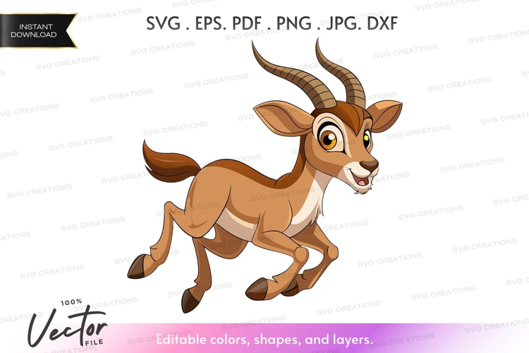 Cartoon Animal Dynamic Nature Horns Wildlife African Leaping Vector Silhouette Gazelle