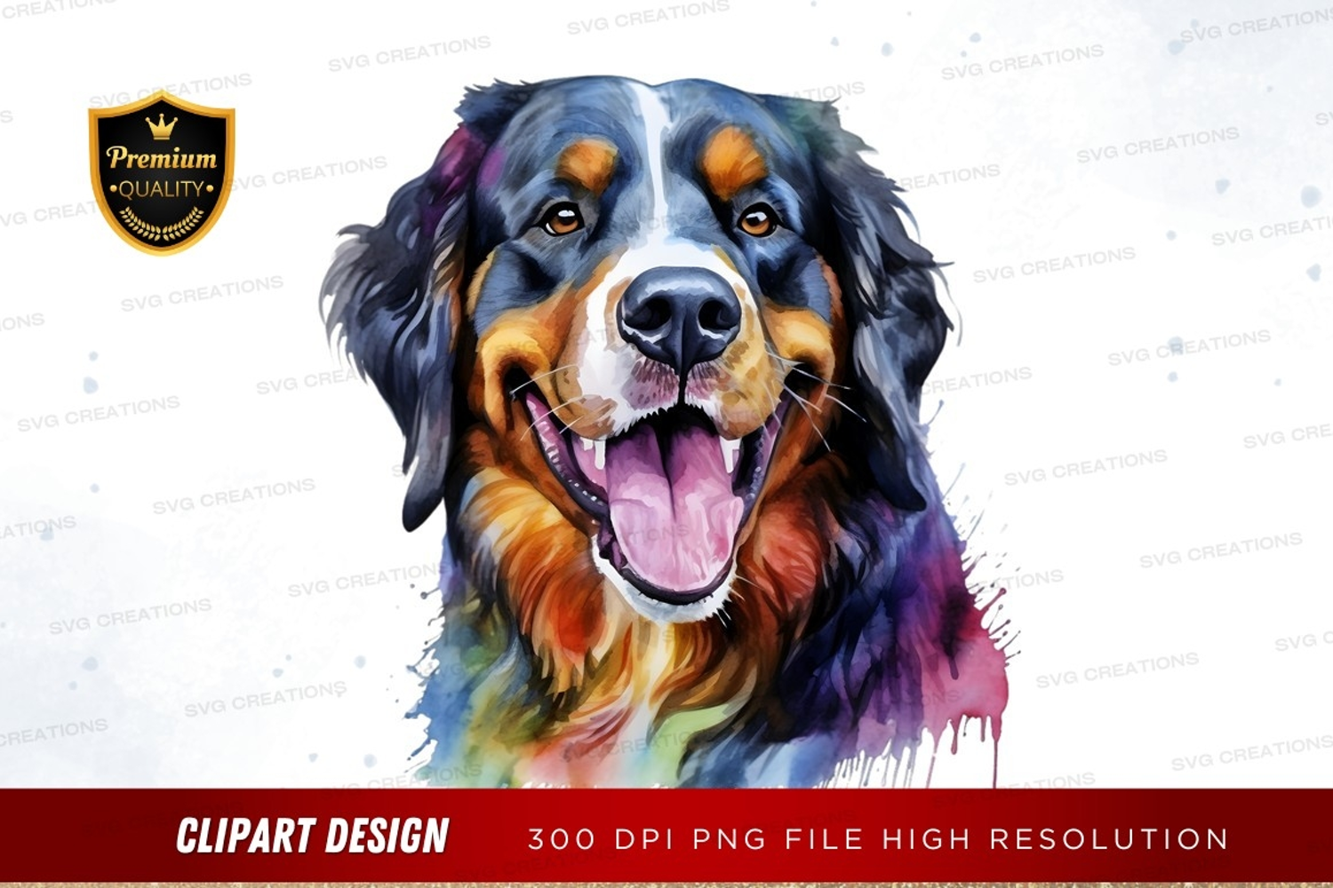 Watercolor Happy Colorful Clipart Png Dog Smiling Bernese Mountain Dog