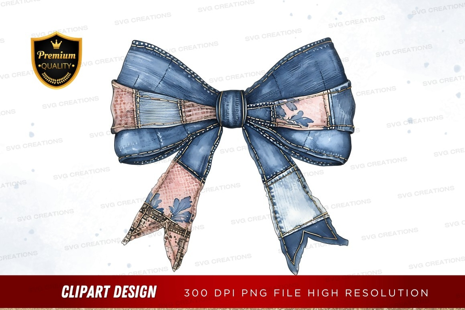 Similar Design Products to Denim patchwork bow clipart png