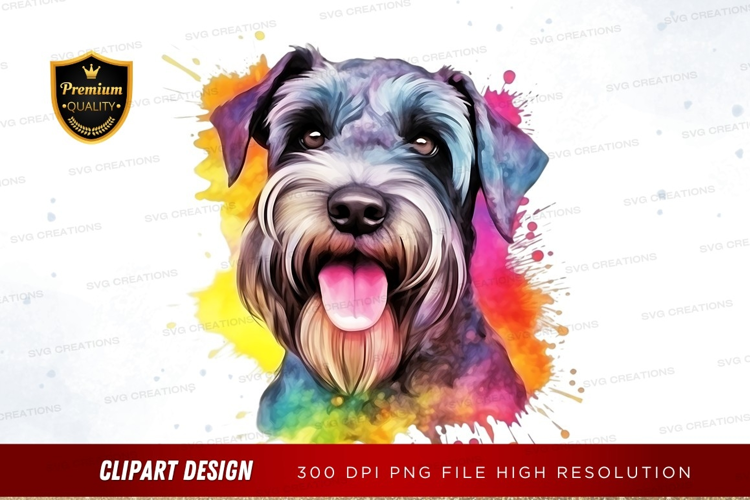 Fun Animal Happy Colorful Artistic Vibrant Puppy Dog Tongue Out Schnauzer