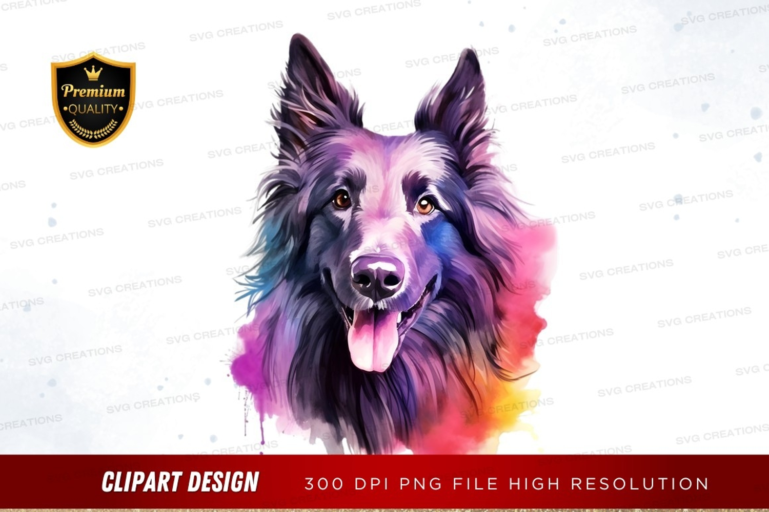 Watercolor Animal Colorful Artistic Clipart Vibrant Png Pet Portrait Dog