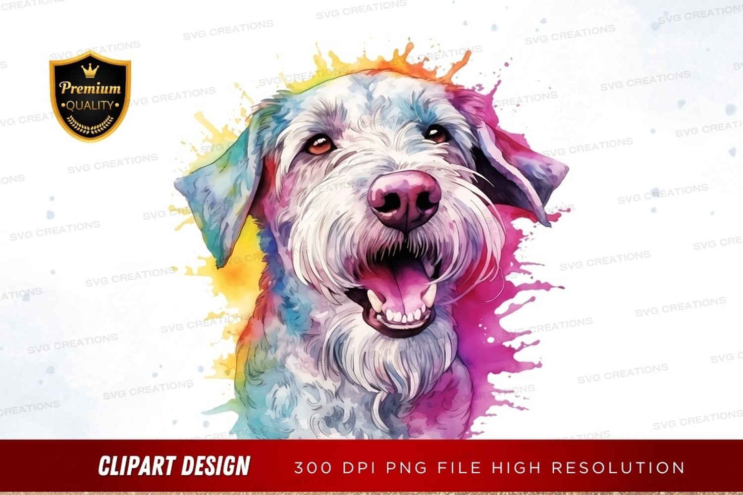 Watercolor Colorful Artistic Clipart Vibrant Png Portrait Dog Tongue Out Happy Dog