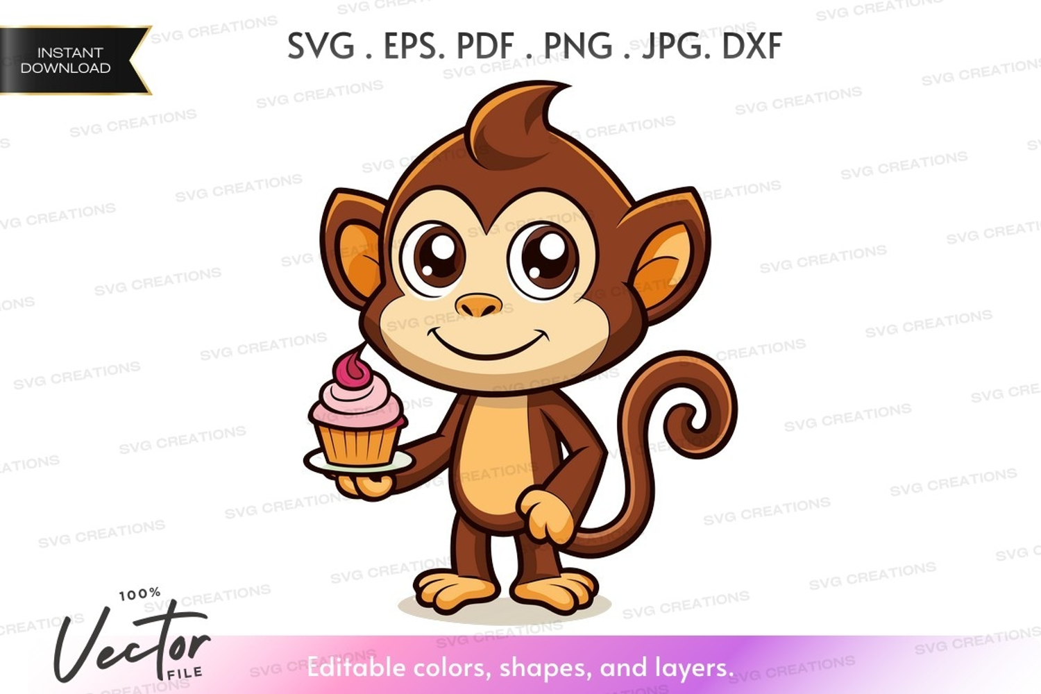 Illustration Cartoon Cute Delicious Cupcake Cherry Monkey Frosting