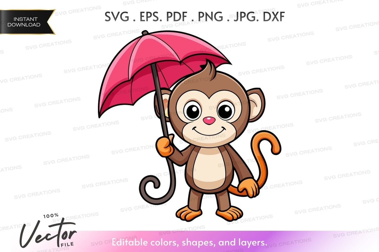 Happy monkey with pink umbrella example image 1