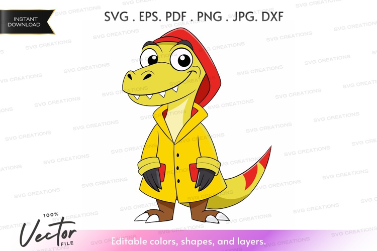 Adventurous dinosaur in raincoat example image 1