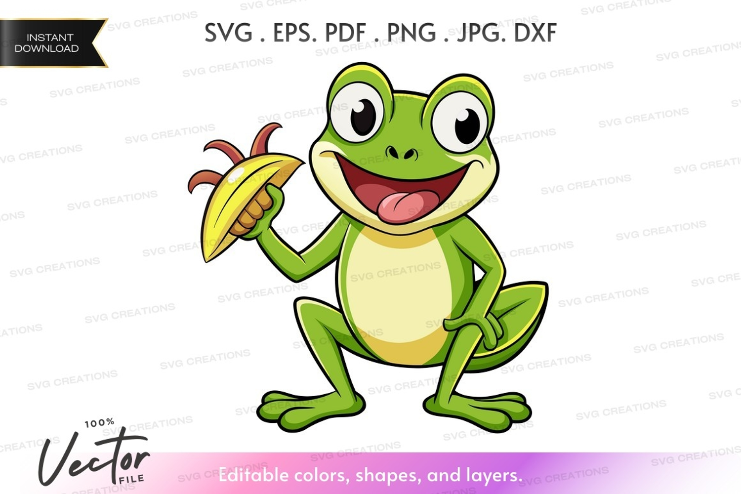 Cartoon Funny Animal Smile Happy Banana Eating Frog