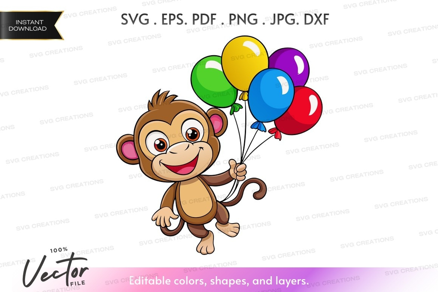 Cartoon Happy Celebration Colorful Monkey Balloons