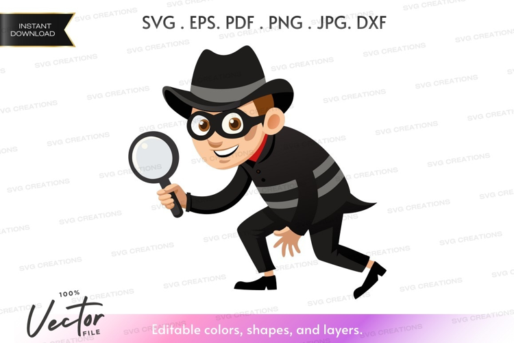 Silhouette Hat Glasses Detective Magnifying Glass Striped Clothing