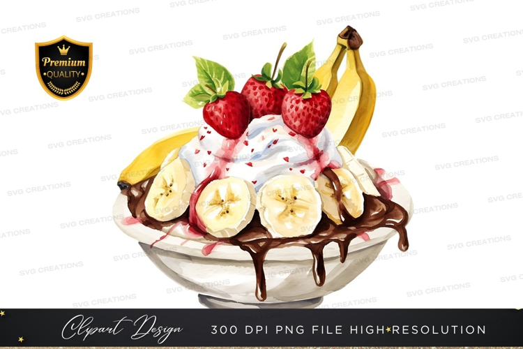 Fruit Clipart Strawberries Png Ice Cream Dessert Chocolate Whipped Cream Bananas