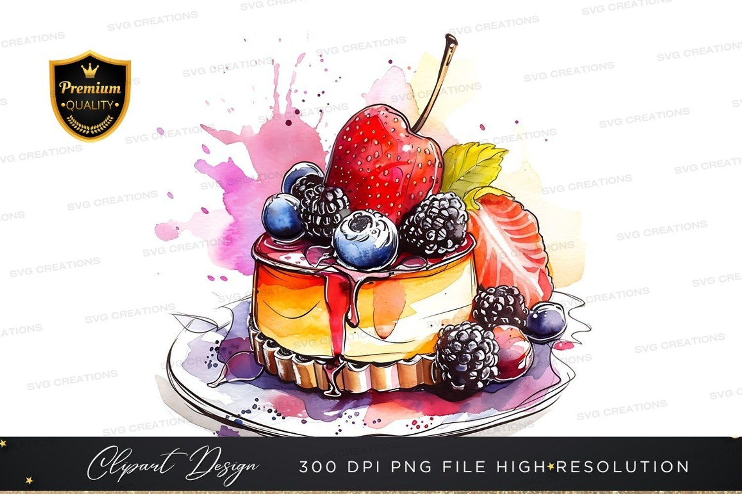Illustration Fruit Colorful Cake Strawberry Blueberry Cherry Dessert Plate Blackberry