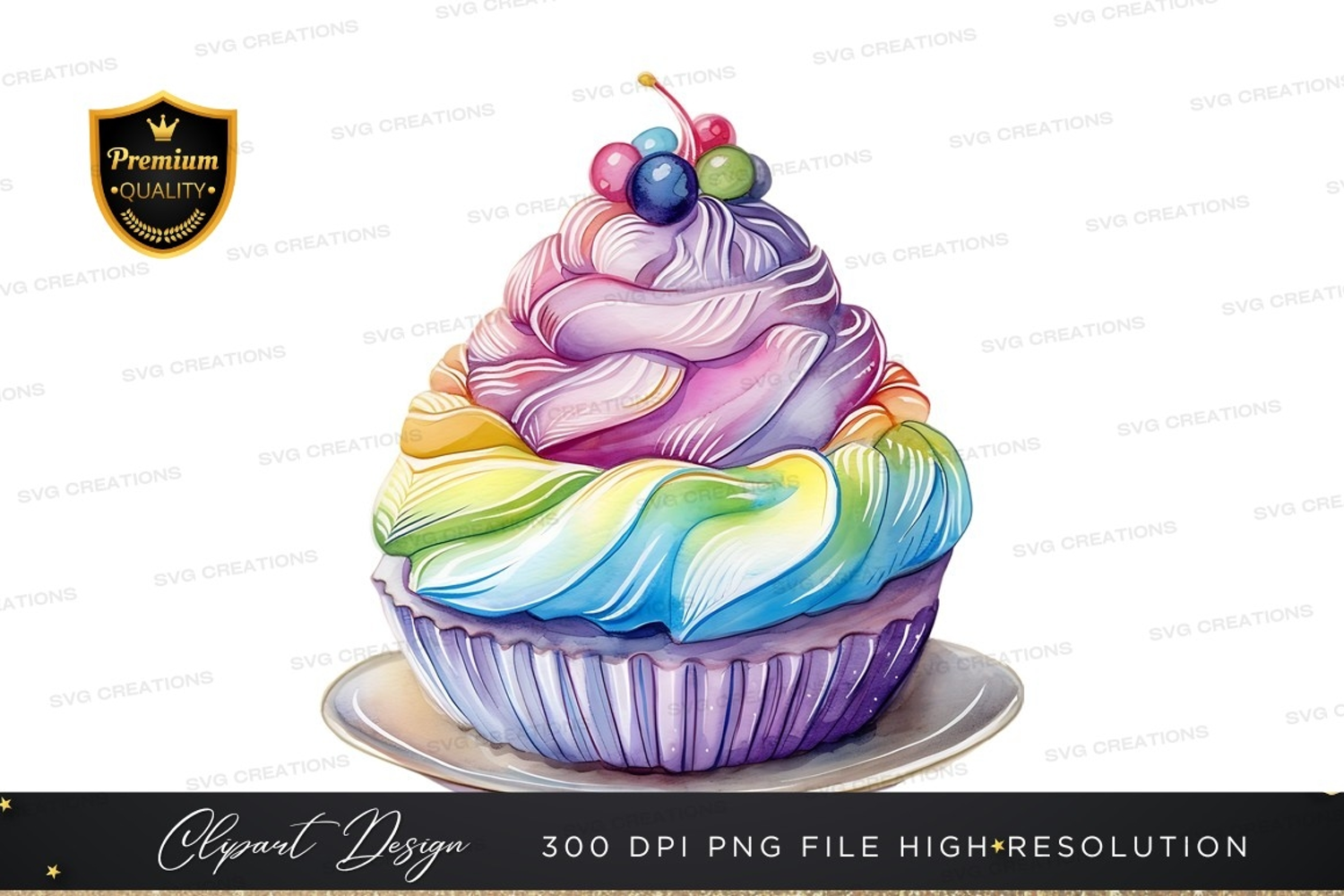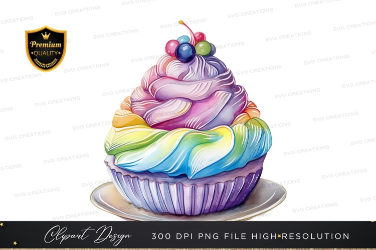 Sweet Colorful Berries Cupcake Cherry Dessert Rainbow Plate Frosting