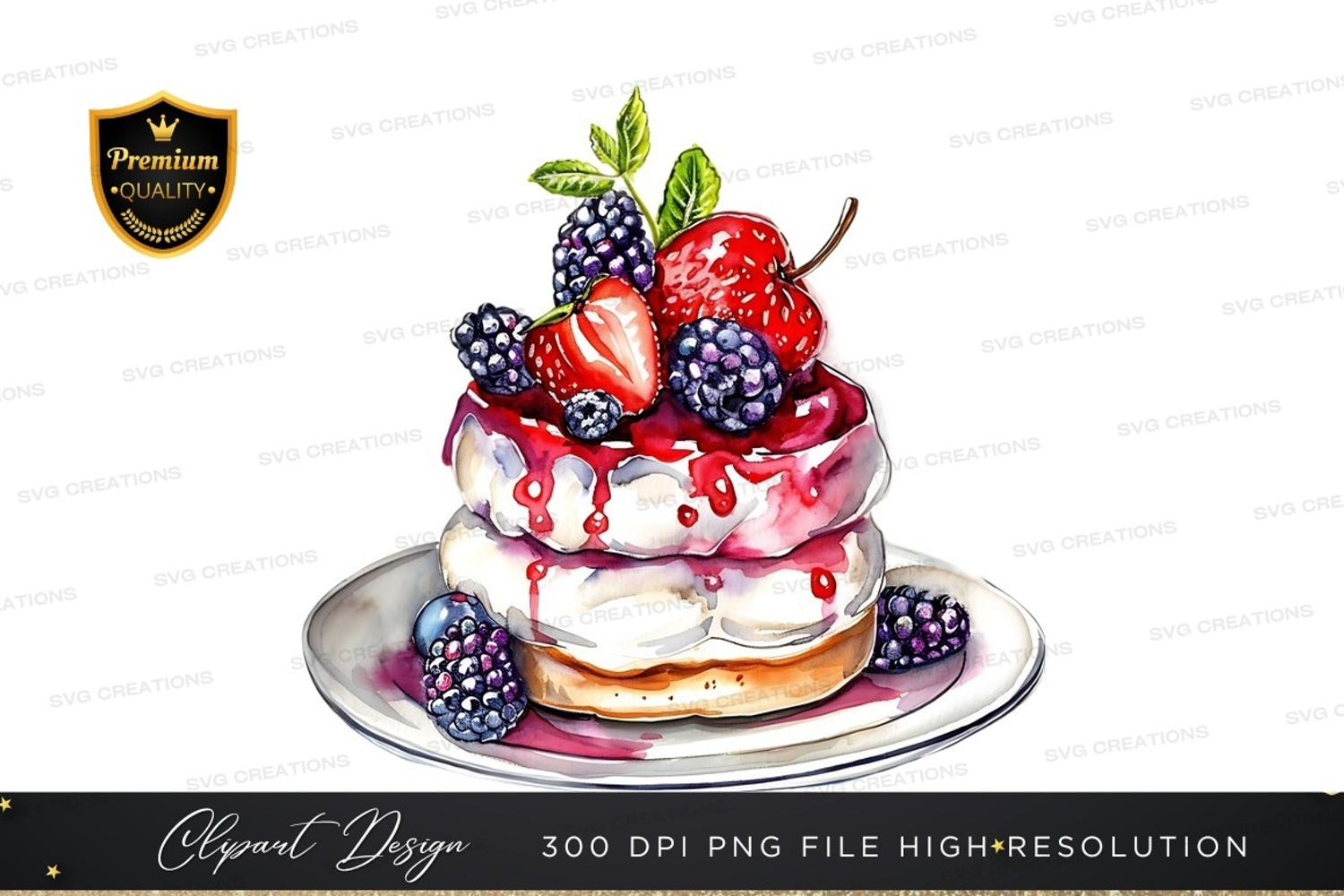 Illustration Fruit Watercolor Cake Strawberry Cherry Dessert Cream Blackberry Raspberry Sauce