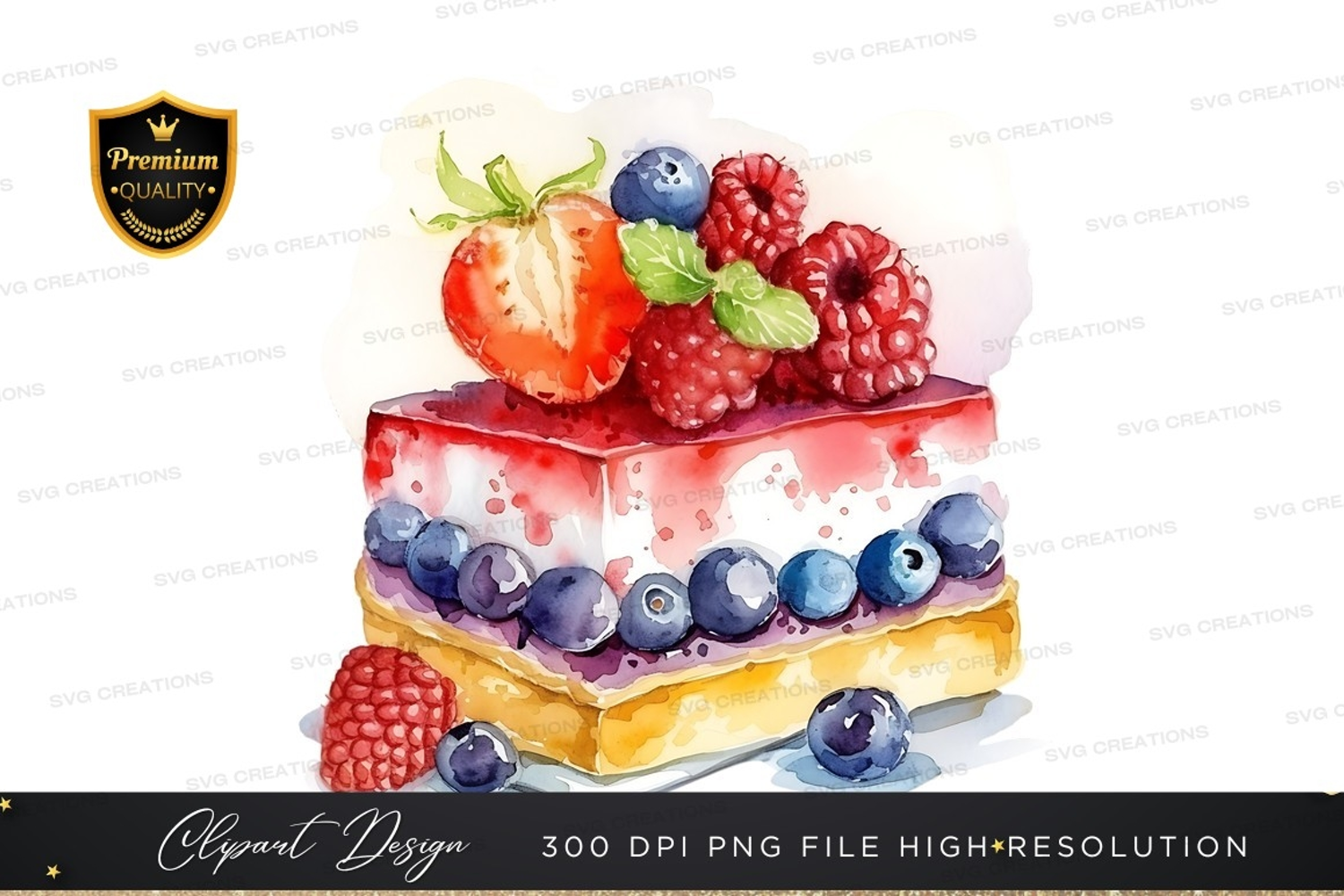 Illustration Watercolor Cake Strawberry Raspberry Blueberry Dessert Berry Sweet Treat Fresh Fruit