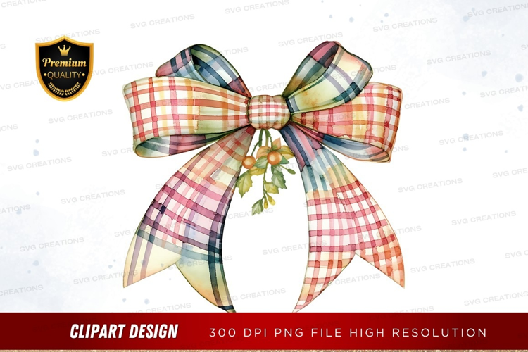 Colorful plaid ribbon bow with berries clipart png example image 1