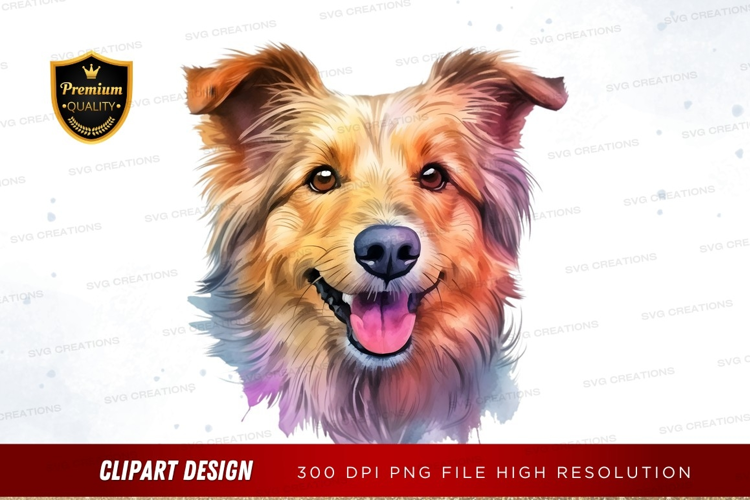 Cartoon Watercolor Animal Happy Colorful Pet Dog Tongue Out Joyful