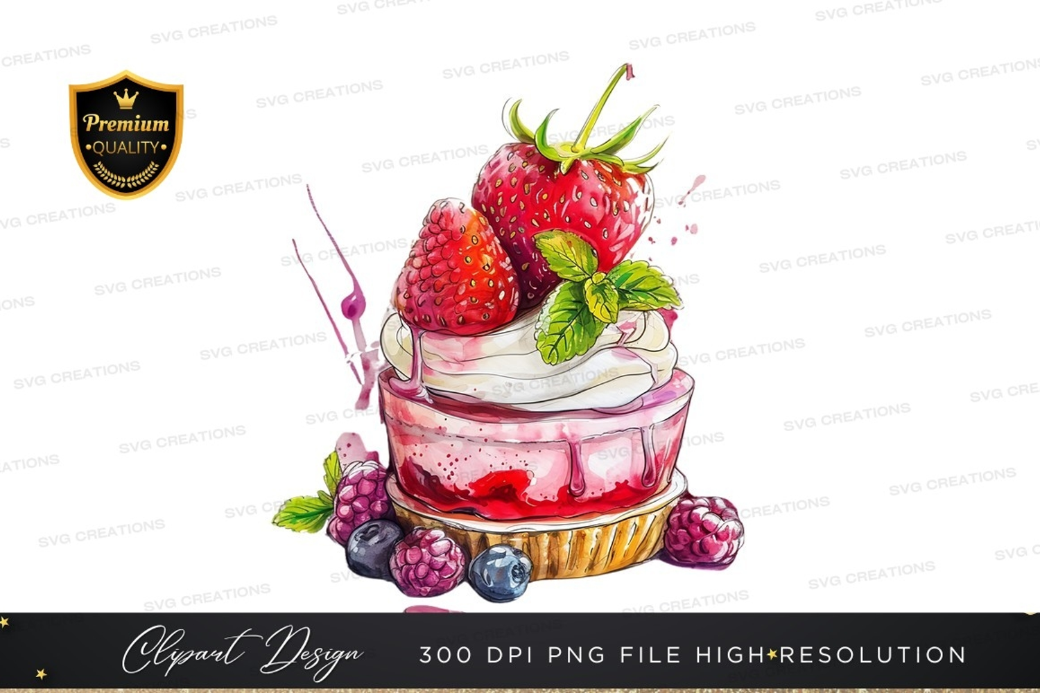 Illustration Mint Clipart Strawberry Berries Png Dessert Whipped Cream Tart