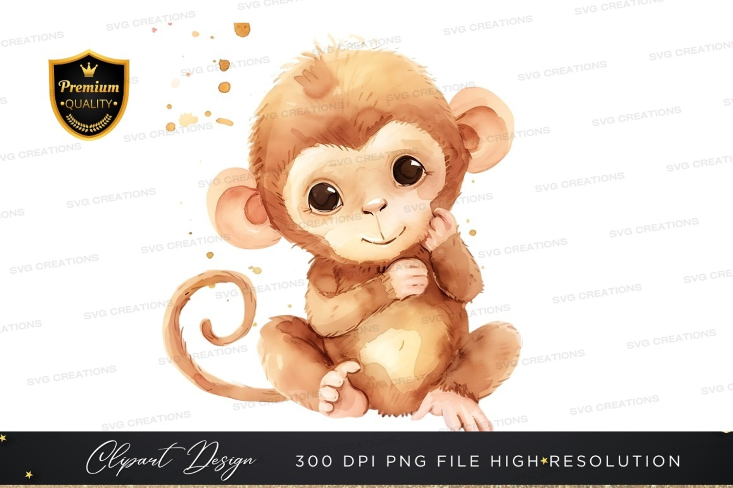 Illustration Cartoon Animal Whimsical Cute Monkey Paint Splatters Baby Monkey