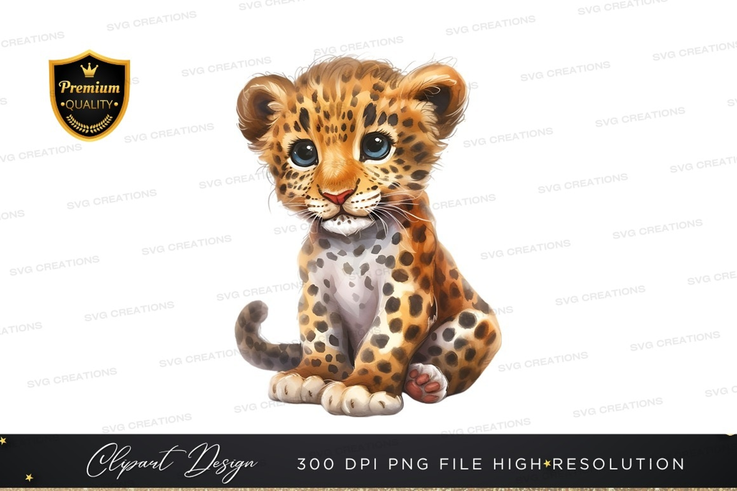 Cartoon Animal Cute Clipart Wildlife Leopard Cub Baby Animal Blue Eyes Spotty