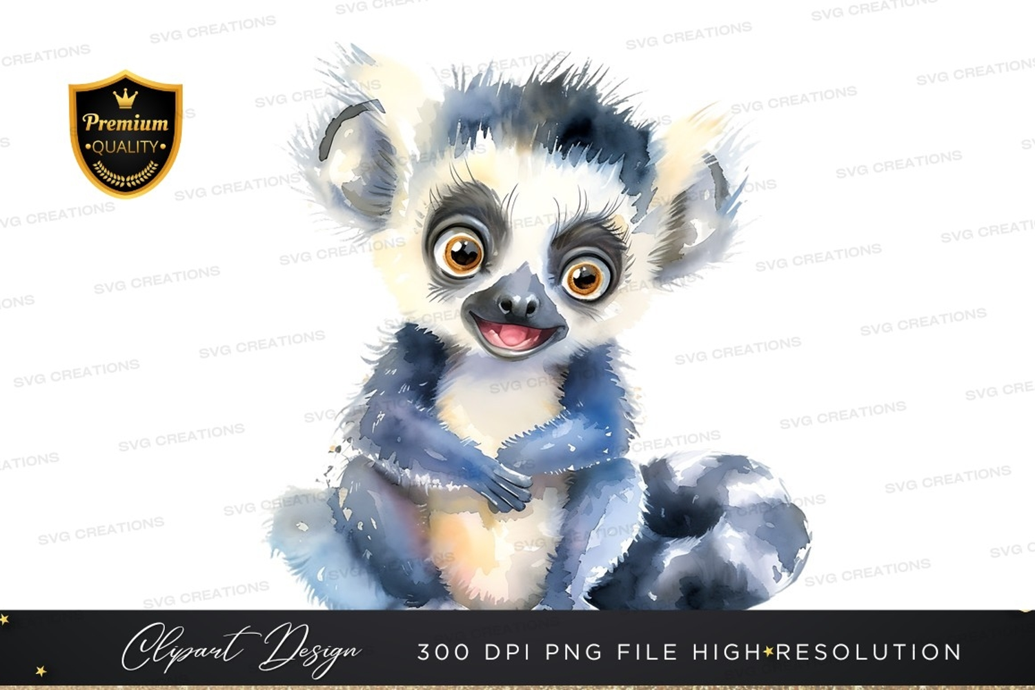 Cartoon Animal Smile Happy Clipart Blue Png White Lemur Furry