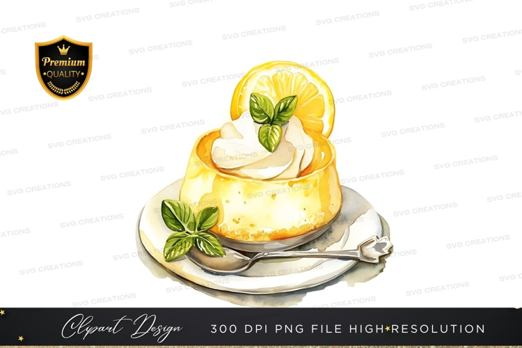 Illustration Watercolor Food Mint Lemon Dessert Plate Fork Lemon Slice Cheesecake
