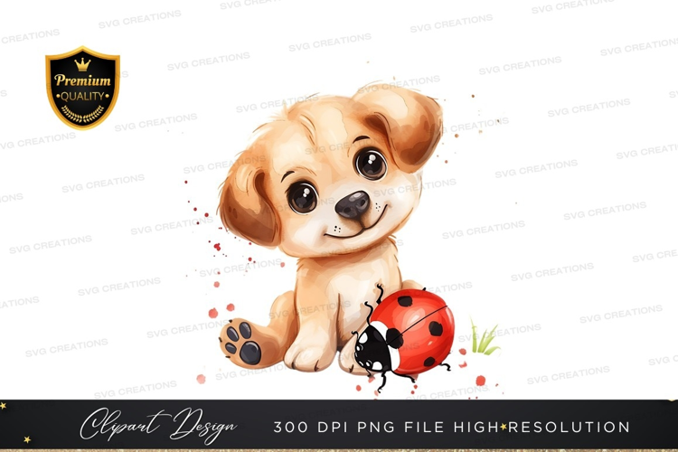 Illustration Watercolor Animal Cute Nature Clipart Puppy Ladybug Childhood