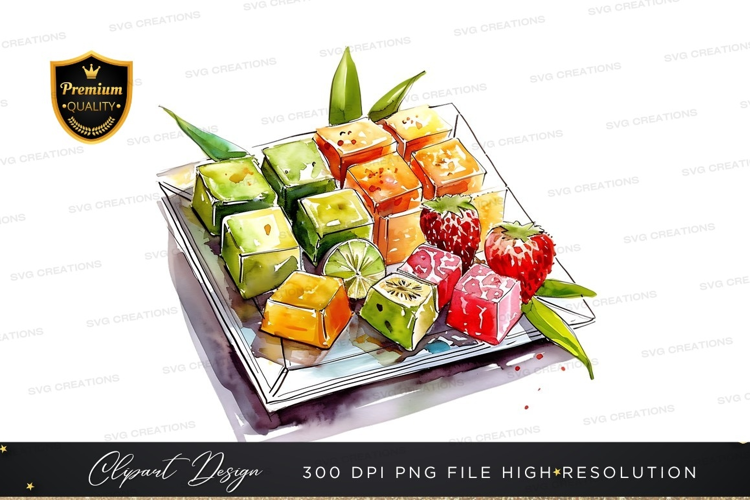 Illustration Fruit Colorful Leaves Png Transparent Background Tray Cubes Whole Fruits