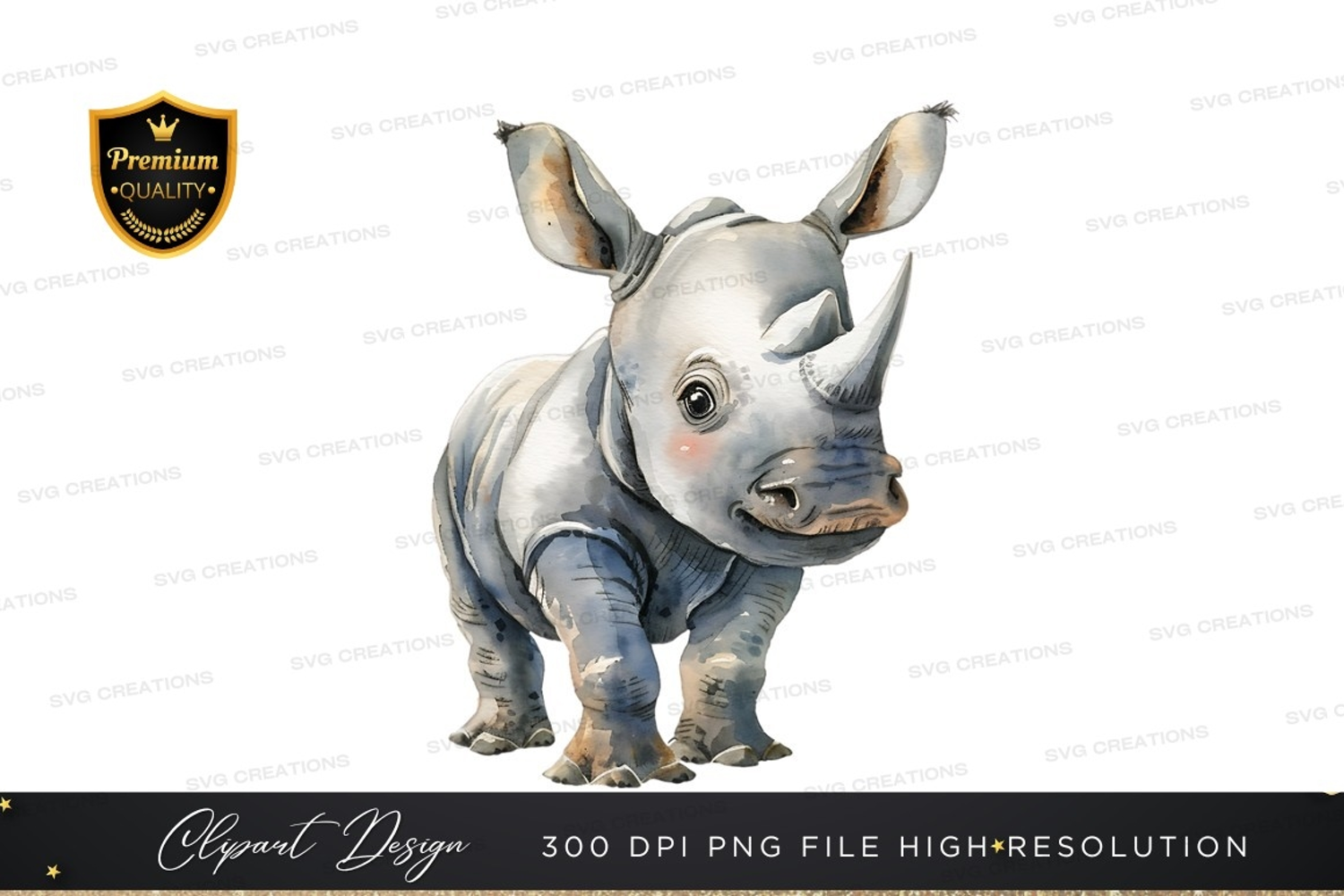 Watercolor Animal Clipart Png Rhinoceros Baby Rhino