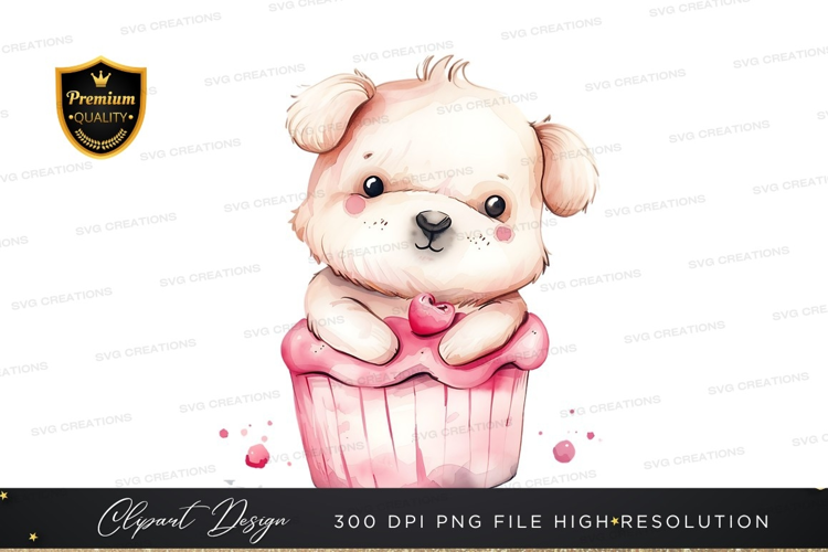 Illustration Cartoon Watercolor Cute Pink Bear Cupcake Cherry