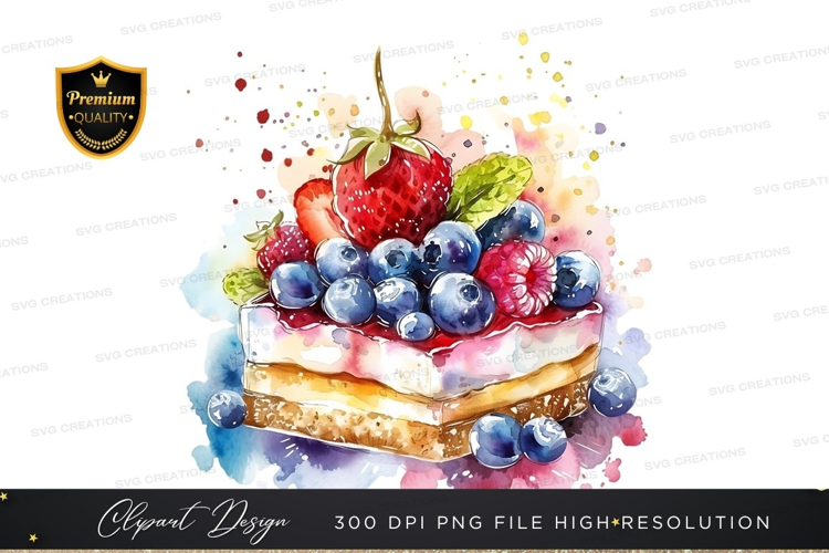 Illustration Watercolor Cake Strawberry Berries Raspberry Blueberry Dessert Cheesecake