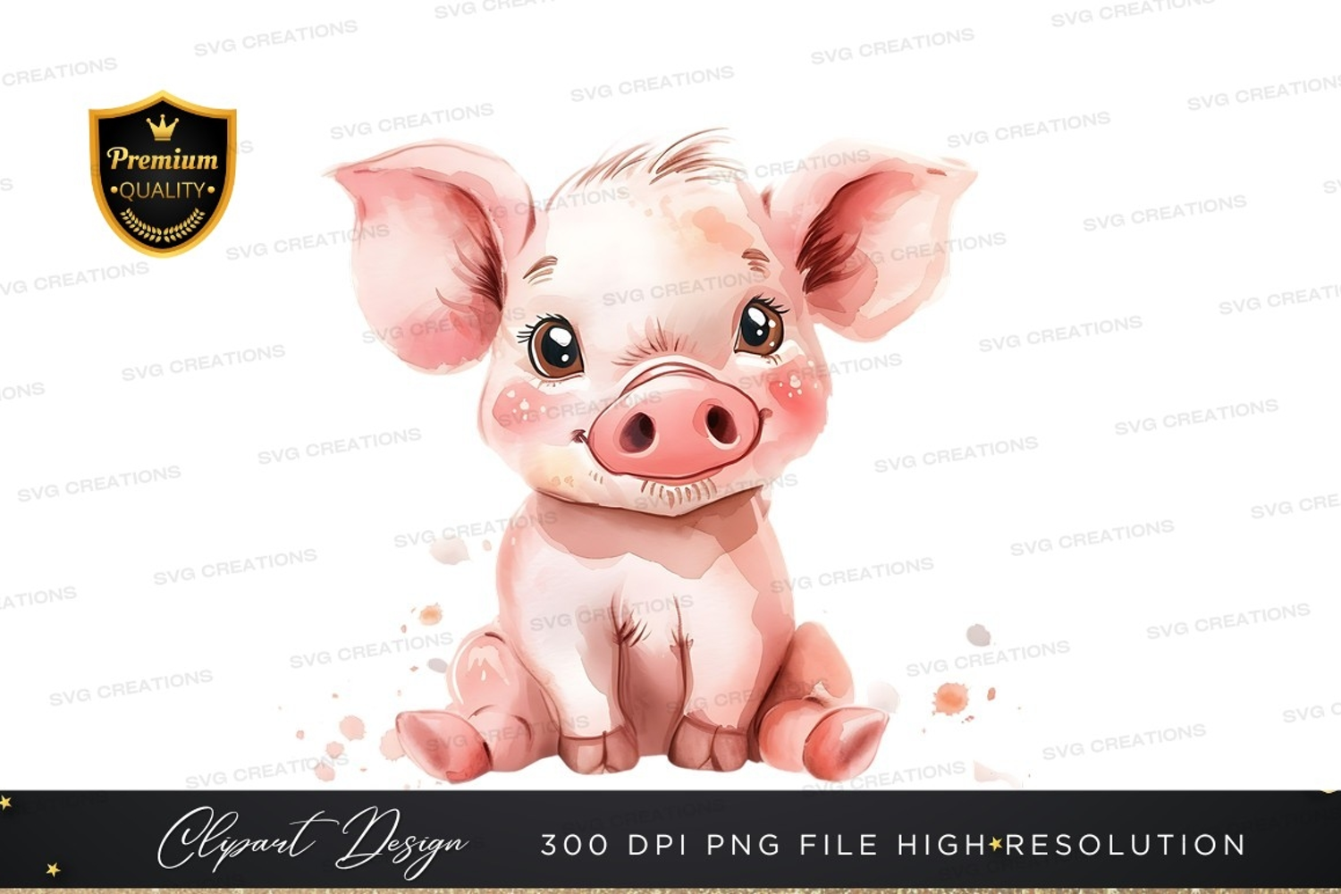 Cartoon Watercolor Animal Cute Pink Clipart Pig Adorable Piglet Baby Pig