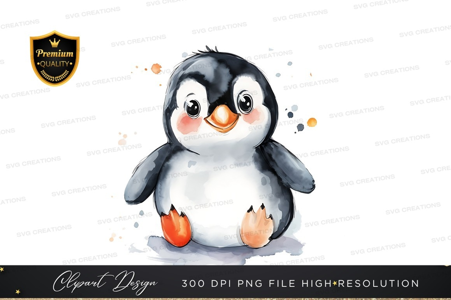 Illustration Cartoon Watercolor Animal Cute Baby Clipart Penguin